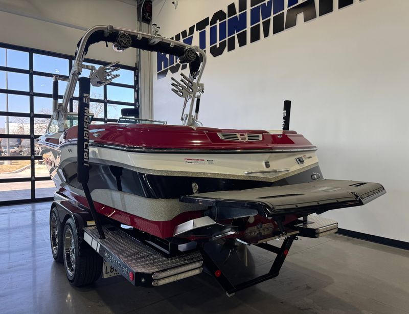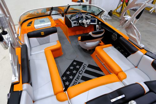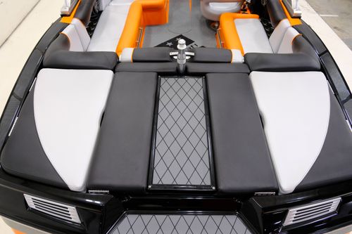 This 2015 MasterCraft X10 is a recent trade-in and sits with 333 hours on the 5.7L Ilmor MV8 Engine. Upon arrival at our shop it received a full service including fresh oil, transmission fluid, filters, impeller, spark plugs, & wires. Our team completed a full detail, exterior polish, and replaced some damaged exterior graphics with a fresh set. It is nicely equipped with an upgraded ballast system, factory surf system, and more. The exterior has a small chip in the bow under the rub rail (see video), and some splits in vinyl of the rear seat bases. For a closer look at the overall condition, please check out our detailed walk-through video on our website listing.