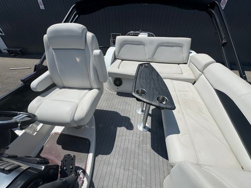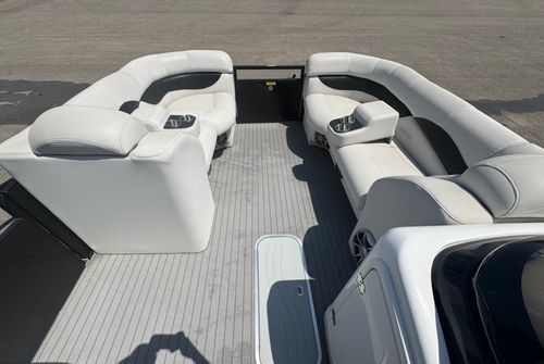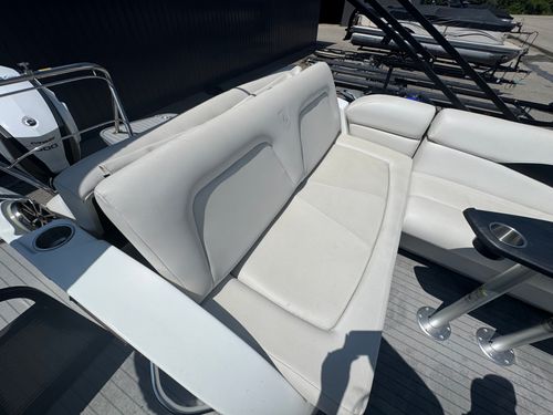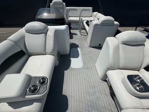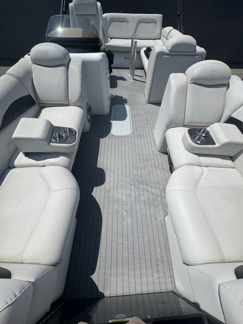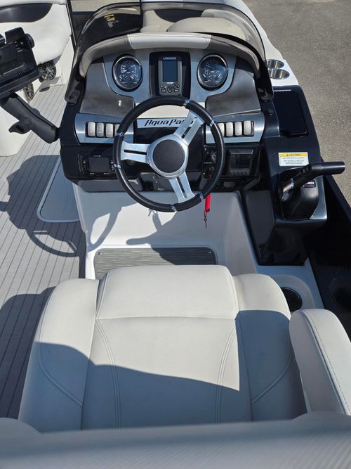 This 2016 Aqua Patio AP 240 Elite OB with a new 2026 Yamaha F150LD offers a compelling mix of luxury and value. At nearly a decade old, it still holds up with solid performance and a stylish layout, showing typical signs of use for its age but overall well cared for. The upholstery, decking, and finishes reflect regular enjoyment but not abuse — ideal for a buyer who appreciates a high-end tritoon without paying top-dollar for brand new.