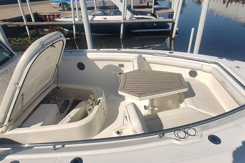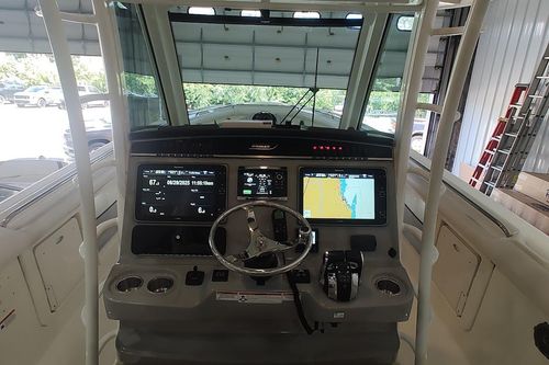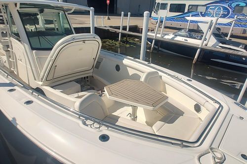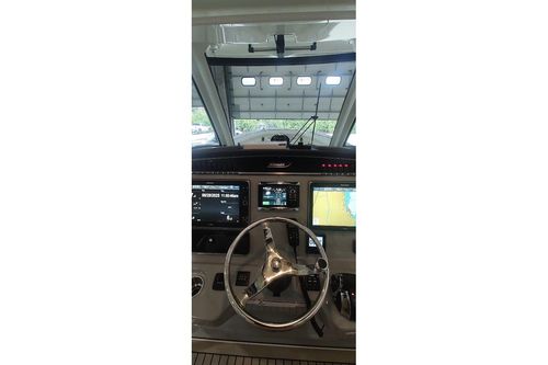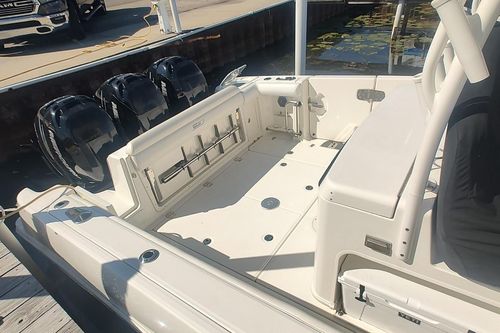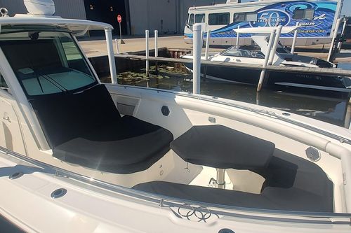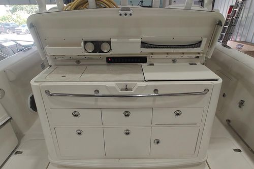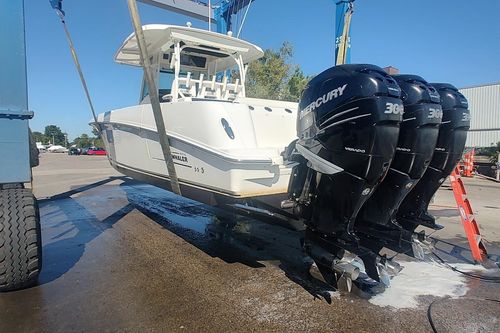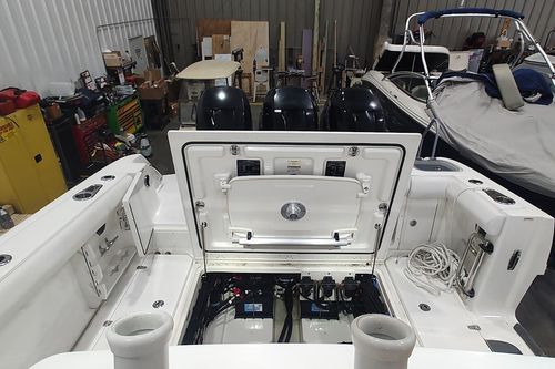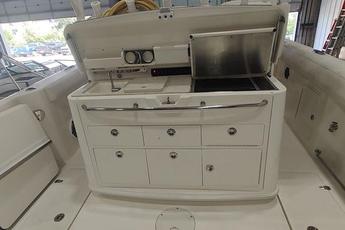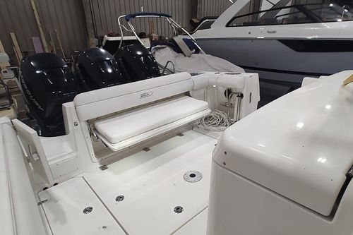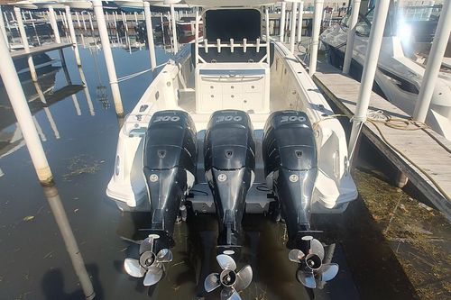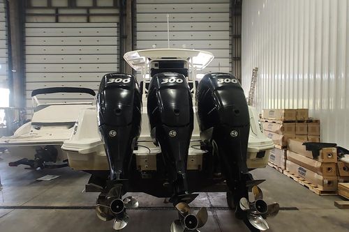 New listing ..Powered with triple 300 Mercury Verados with less than 400 Freshwater dealer maintained hours , Bow Thruster , Dual 15" Raymarine (Plotter -Fish-finder -Radar , Autopilot , Cockpit Grill with inventor , Electric Sunshade , Fold down trolling seats and Summer kitchen option...