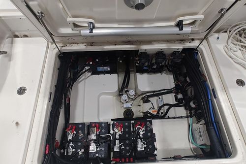 - Automatic bilge pumps – 1100 GPH interior, 2000 GPH bilge, 2000 GPH with high water steady state alarm