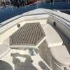 - Molded console footrests and fold-down helm standing platform with maintenance free synthetic teak surface
