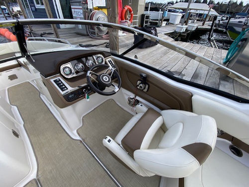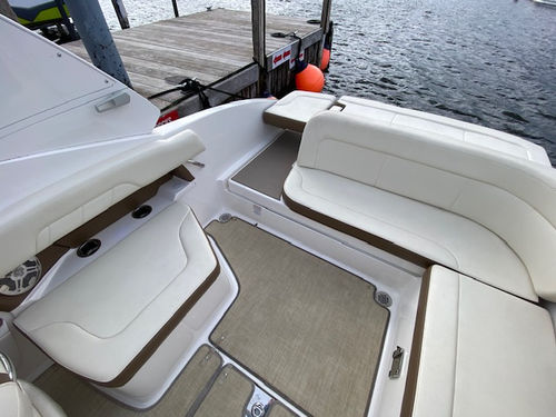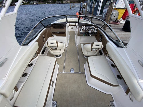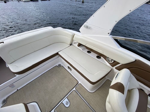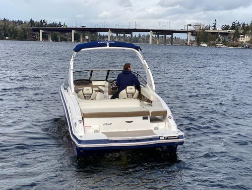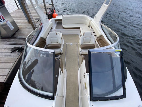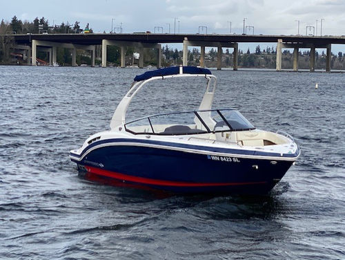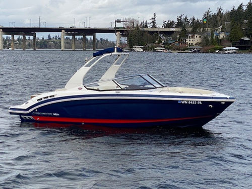 Wonderful condition 2016 Chaparral 257 SSX (Classic Navy with Red Boot Stripe / Sand Interior). Powered by a Direct Injected Volvo 380 php / duo prop engine with a freshwater cooling system and only 221 hours! One-owner, freshwater only, boat lift kept, and stored indoors in the off season. Loaded with options: Folding watersports arch with bimini, seagrass flooring, pump-out head, head portal light/window, head sink, premium sound system with transom remote, automatic engine hatch lift, pop-up cleats, stainless steel windshield, swim platform and bow ladder, dual batteries with switch, trim tabs with indicators, aft walk thru filler cushion, anti-corrosion system, bow/cockpit tonneau covers, mooring cover, and more!