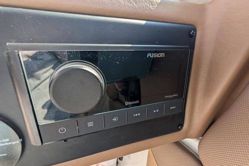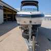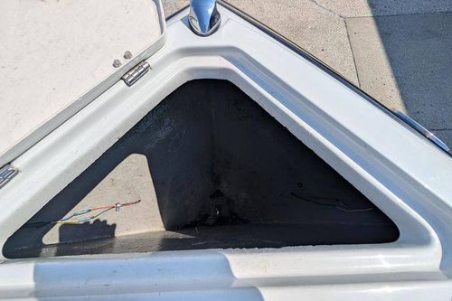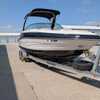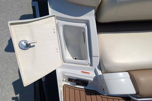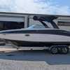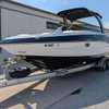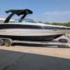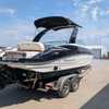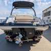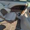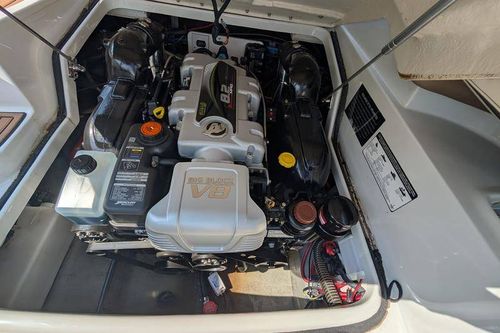 This boat has the 8.2L big block V8 engine with 365 hours, captain's call exhaust, battery charger, underwater transom lights, upgraded stereo system, electric arch, snap in flooring, and plenty of storage, trim tabs, portable table, bow filler cushions and interior lighting with remote key fob.