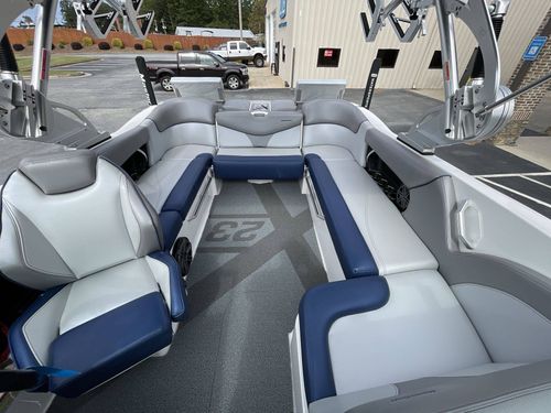 Equipped with a technologically advanced Gen 2 Surf System, the X23 creates an exceptional wake surf for boarding and skiing. A powerful Ilmor 6.2L GDI V8 engine powers the boat, promising an exhilarating ride. Other features include a cutting-edge navigation system and state-of-the-art entertainment center, which enhance user experience.