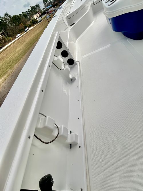 Equipped with plush seating, premium audio, a built-in cooler and multiple storage compartments, every minute aboard this boat feels like a mini-vacation. A customizable helm station, diverse rod storage options and superb live-bait systems cater to the needs of demanding fishermen.
