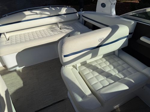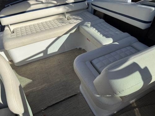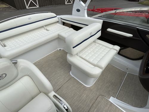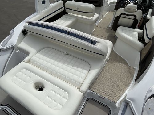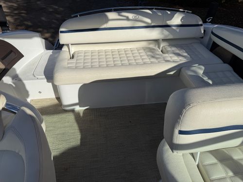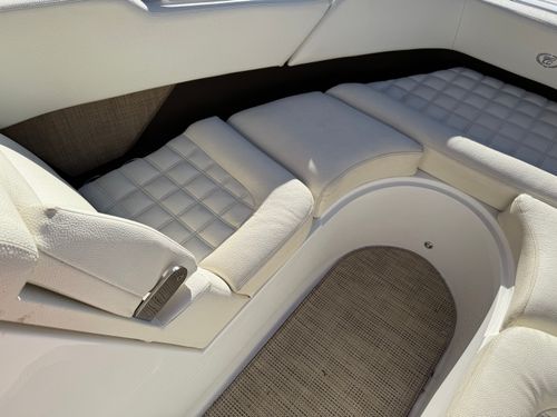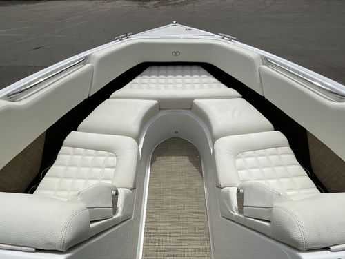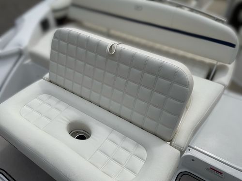 Feel the rhythm of the waves as you enjoy your favorite tunes through the premium sound system with transom speakers & remote. Whether you're dancing on the deck or relaxing in the cabin, the crystal-clear sound quality will envelop you in an audio paradise. Step onto the sea grass interior that exudes sophistication and comfort. The port sunpad filler cushion invites you to stretch out and soak up the sun, while the thoughtfully designed layout ensures ample space for relaxation and socializing.