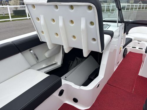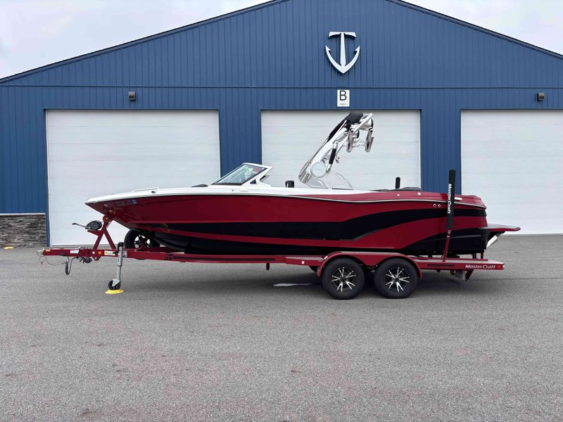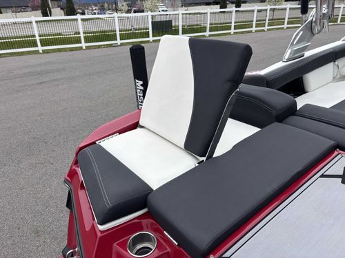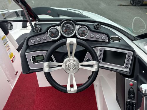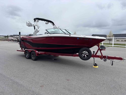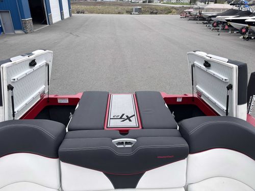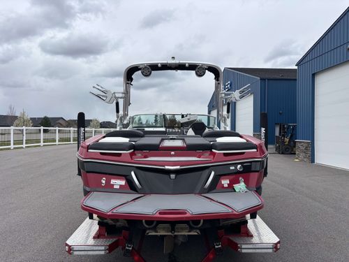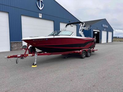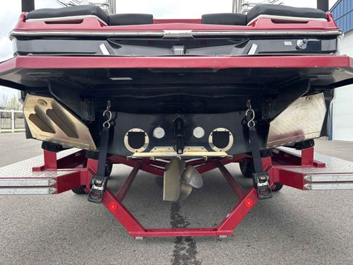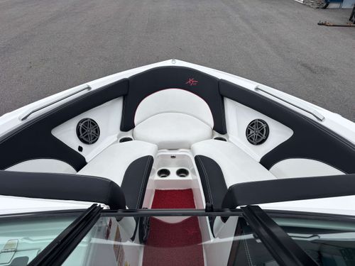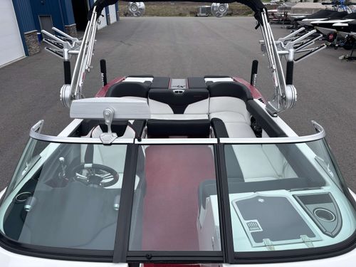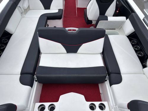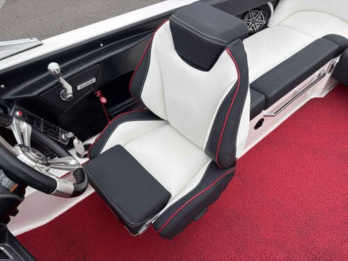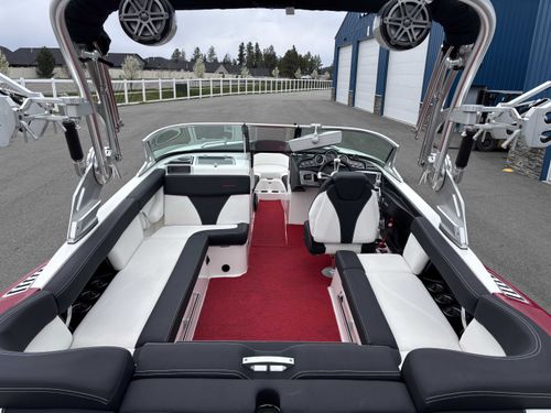 2017 Mastercraft XT23 (Red, Black, White) in Like New Condition, Powered by a 5.3L ILMOR 5500GDI with 365HP and 692 Hours. This boat's options include: Gen 2 Surf System, 2 Rear Soft Ballast Bags, Center Hard Ballast Tank, Retractable Tower, Dual Board Racks, Folding Bimini (Black), 2 JL Tower Speakers, JL Bow and Cockpit Speakers, Fusion Audio System, Rear Facing Flip Up Seats, Heating System, Decadence Flooring, Dual Battery Switch