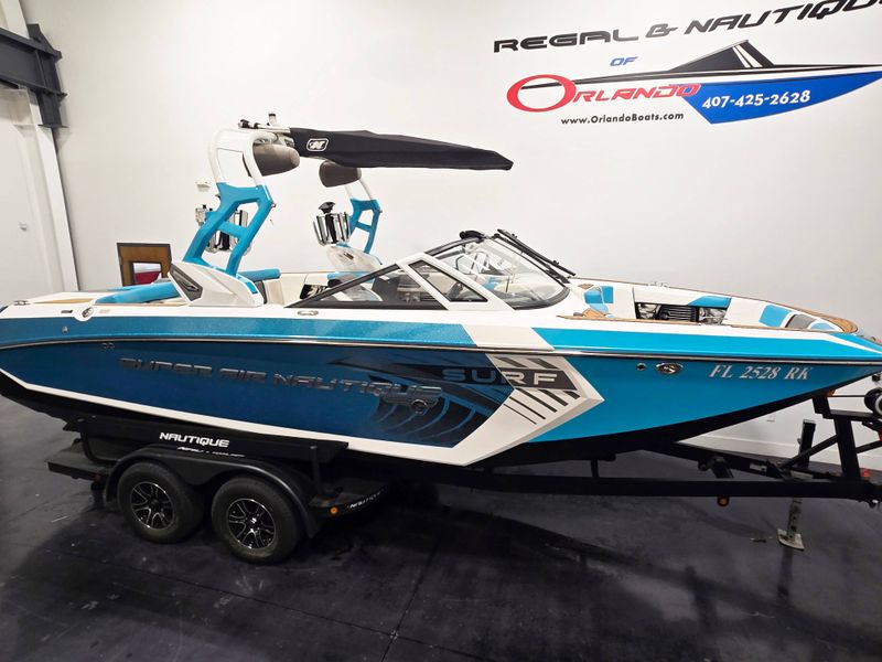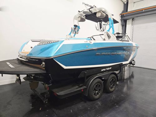 Features include a composite boarding platform, rotating wakeboard racks, flip-up driver’s seat, and LED courtesy lighting for added comfort and functionality. Enjoy modern conveniences like Nautique Helm Command with Navionics maps, dual batteries with switch, JL Audio tower speaker prep, and a bimini top with surf pockets. Additional upgrades such as underwater lights, docking lights, mooring cover, and walk-through air dam complete this well-equipped G23—perfect for those seeking performance, style, and versatility on the water.
