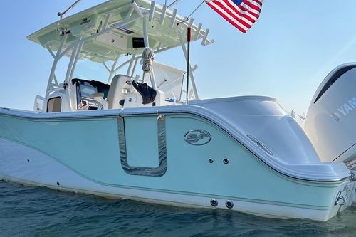 Introducing the 2017 Sea Fox 328 Commander, a remarkable center console boat that perfectly blends performance and comfort. With an overall length of 33 feet, this vessel boasts a robust fiberglass hull designed in a deep Vee shape, ensuring a smooth ride even in choppy waters. Powered by twin Yamaha 350 hp outboard engines, it delivers impressive power and reliability, with a total of 700 horsepower ready to take you on thrilling adventures. Equipped with an electric windlass, this boat enhances your anchoring experience, making it easier to enjoy your time on the water. The thoughtful design includes a head for convenience, ensuring comfort during longer outings. The Sea Fox 328 Commander is not just a boat; it’s a gateway to unforgettable experiences on the water, combining cutting-edge features with a spacious layout for relaxation and enjoyment.