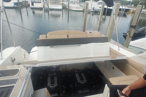 This is a awesome family boat , hard to find mid-size Sea Ray cruiser that can sleep 4 comfortably overnight , always freshwater and less than 150 original hours on her upgraded optional twin 6.2 ECT Bravo 3 Mercruisers , options include full like new canvas package (camper and cockpit cover) , Mocha cockpit interior , Cockpit grill and fridge , Extended platform, air & heat , chart plotter with smart craft..