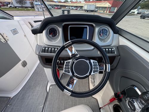 Nestled in its heart is a powerful V8 engine, delivering exceptional performance and a superb cruising experience. Its combines Chaparral's patented Wide Tech™ technology with the innovative surf series, offering unrestrained, high quality surfing and wakeboarding adventures.