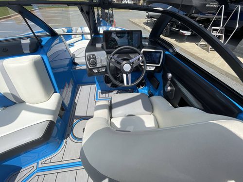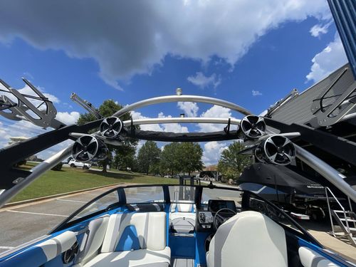 Powered by a robust engine, the boat is easy to maneuver, and its high-speed capabilities excel in the realm of water sports. It further features an impressive audio system, advanced navigation tools, and top-tier safety features for an exceptional boating experience.