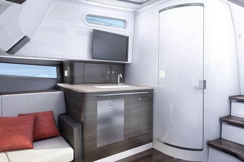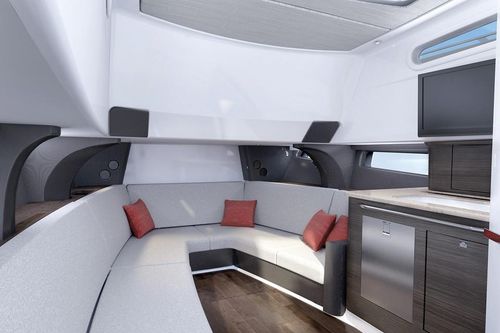 - Spacious cabin with V-berth offers 7 feet of headroom and two available color schemes.