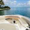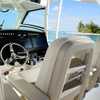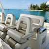 - Helm and companion bolster style seats (3) with fold-down armrests (center seat is electrically actuated) (port and starboard seats rotate to face aft)