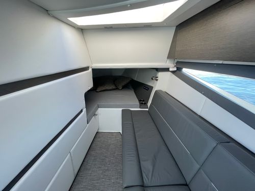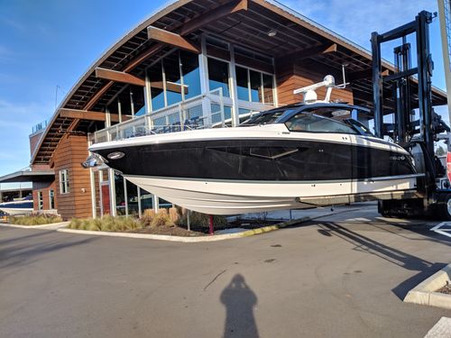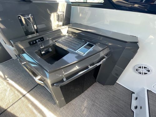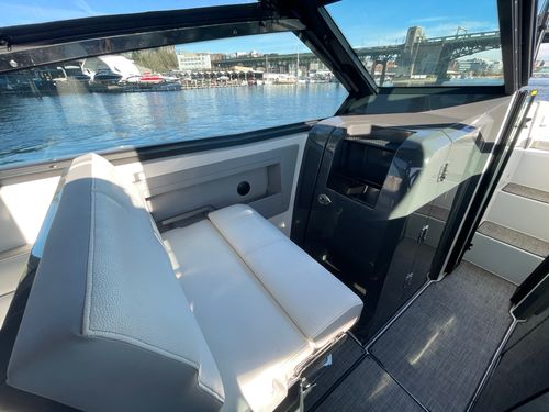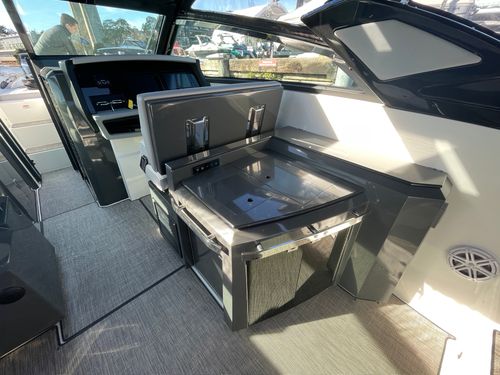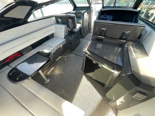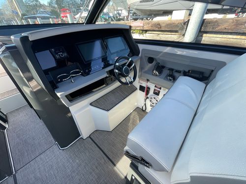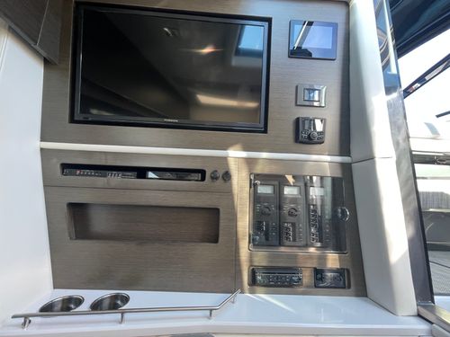 Check Out This Hot Boat! This is your perfect year-round boat, ready for any of your upcoming adventures! Powered By Volvo Penta Sterndrive Power Twin V8-380CE DP and 230 Engine Hours along with, Joystick Sterndrive w/E Key-Volvo, Three Color Custom, Bow Tonneau Cover, Full Canvas Enclosure Package, Garmin 48'' Open Array w/KVH, VHF Radio w/Antenna, Cabin Entertainment Package (TV/DVD), TV w/Lift, Cockpit Galley, Barbeque Grill, Docking Lights-Stainless Steel, Flagpole w/Flag, Floor Covering - Sea Grass-Cockpit, Refrigerator, Transom Shower, Underwater Lighting, Air Conditioning/Heating, Head w/VacuFlush and Macerator, LED Interior Accent Lighting (RGB), Fire Extinguisher, Automatic System, Generator (Gas) 6.5kW, Windlass (std) w/Chain Counter, Satellite TV (Inland)