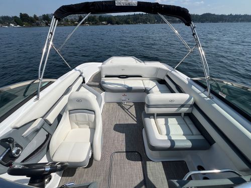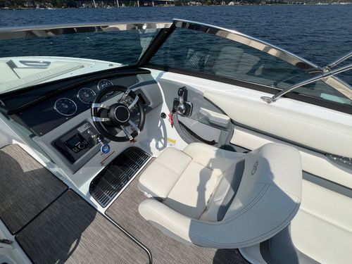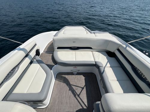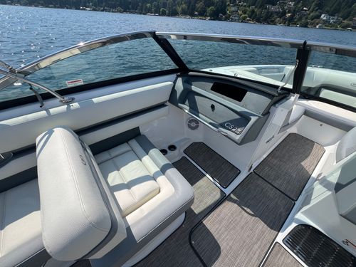The 2019 Cobalt CS23 is a sleek, high-performance runabout that blends luxury, style, and sporty handling in a compact 23-foot package. Built with Cobalt’s signature deep-V hull and high-quality craftsmanship, the CS23 offers a smooth, stable ride ideal for cruising, watersports, or relaxing on the water. It features a spacious, open-bow layout with premium upholstery, stainless steel accents, and a thoughtful interior design that maximizes comfort and functionality. Powered by a Volvo Penta V6 putting out 240HP, the CS23 delivers responsive acceleration and impressive top-end speed. Standard features include a swim platform with a folding step, digital helm controls, and abundant storage throughout. Whether you're pulling skiers, exploring the lake, or lounging with friends, the 2019 Cobalt CS23 offers a refined boating experience that stands out in both performance and elegance.