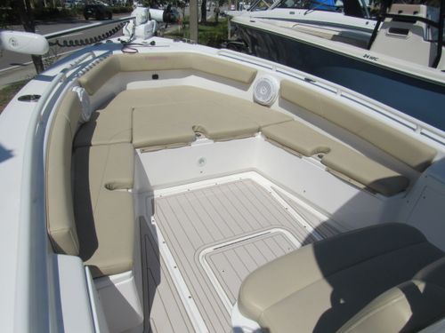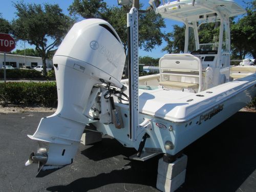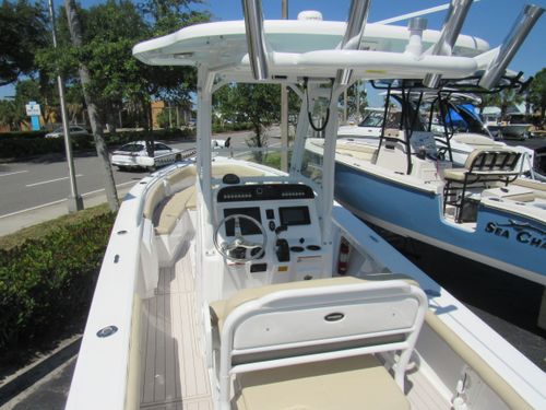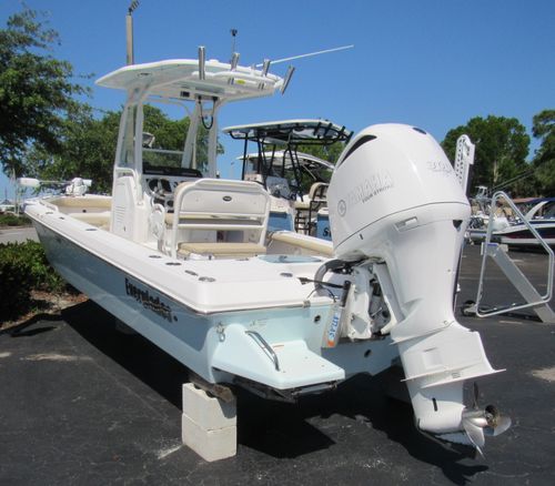 2019 Everglades 243cc – Ultimate Versatility, Offshore Performance Meets Inshore Agility. The Everglades 243cc is the epitome of innovation and craftsmanship, seamlessly blending the rugged performance of an offshore center console with the nimble, shallow-water capabilities of a bay boat. Whether you're chasing trophy fish in open water or exploring quiet backwaters, the 243cc is engineered to adapt effortlessly to your boating lifestyle. This 24-foot powerhouse is built on Everglades' patented RAMCAP hull, offering a smooth, dry ride even in choppy conditions. Its deep-V hull and pronounced bow flare provide superior offshore handling, while the shallow draft allows you to venture confidently into shallower waters that other boats in its class simply can't reach.