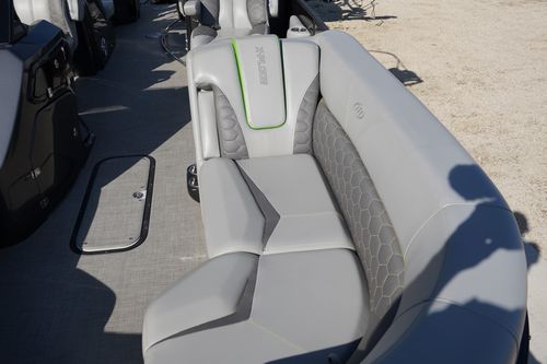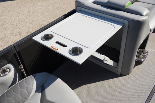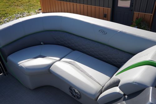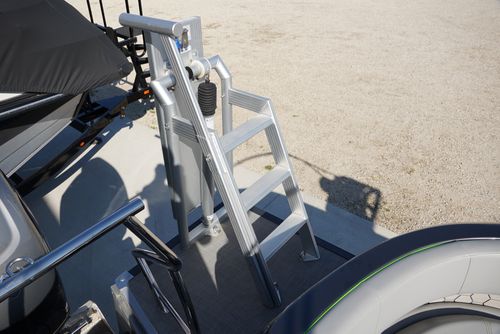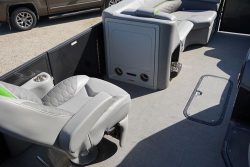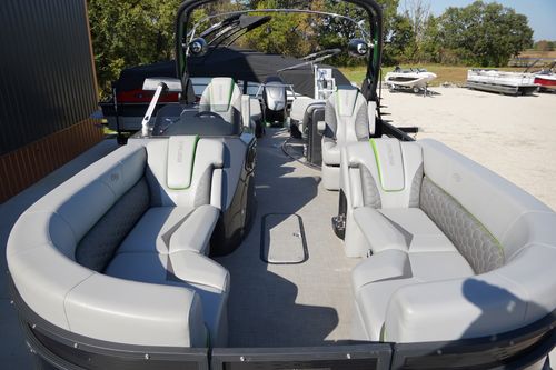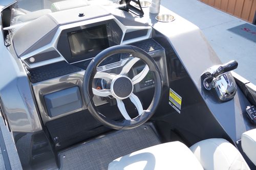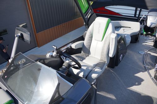 Bucket seats with recliner captains chair, power folding tower, led courtesy lights, JL audio system, lilipad diving board, tube/ski attachment point.