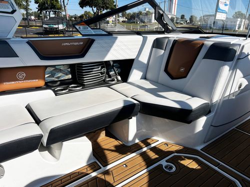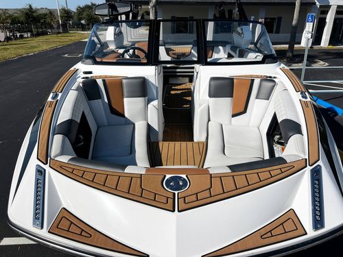 Loaded with tons of upgrades like the steering assist thruster, power folding tower, 4JL tower speakers, studio elite stereo system including 2 12 inch sub woofers, heater, upgraded lighting package with RGB lights, under water lights, docking lights and much more. 750 hours