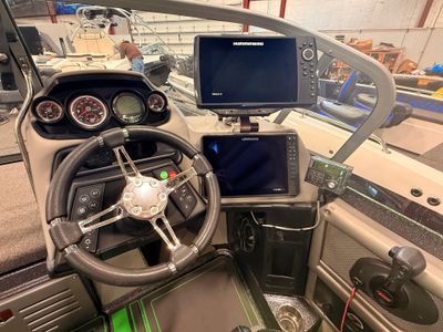 Construction: Foam-filled fiberglass stringer hull; automatic bilge pump; remote steering; walk-through windshield; carpeted deck; strong live well and fish box capacity; feature-rich console with integrated GPS/fish finder and audio systems