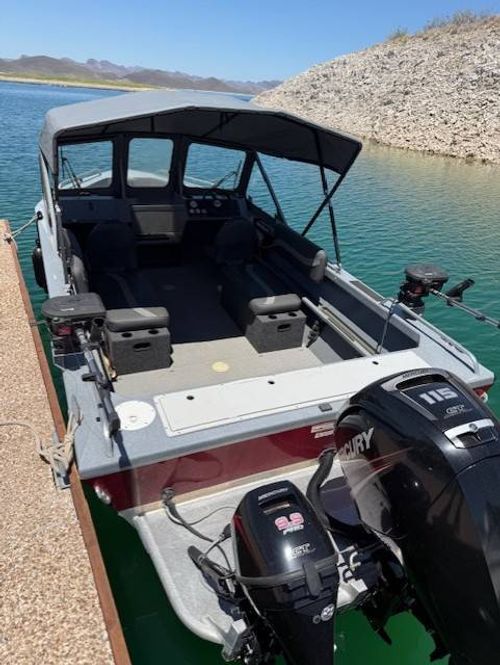 For sale is a 2019 Spartan Astoria fishing boat measuring 18.5 feet in length. This boat is lake ready and in great condition, with a well-maintained hull and overall structure. It is powered by a Mercury 115 Command Thrust outboard engine that is also in great condition. In addition, it features a Mercury 9.9 Command Thrust trolling motor, providing excellent maneuverability and control while fishing.