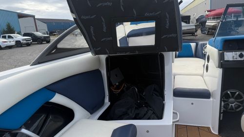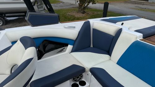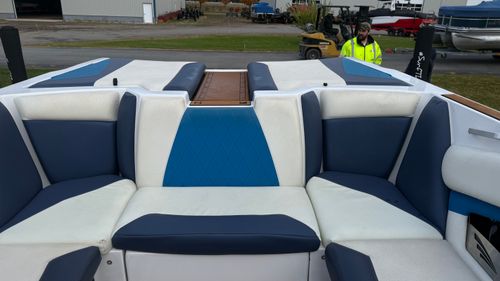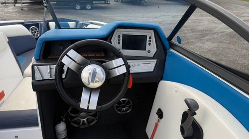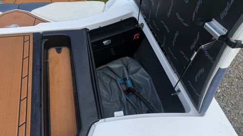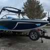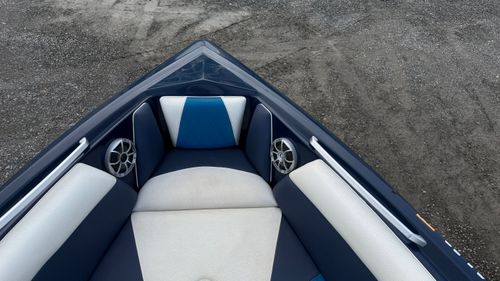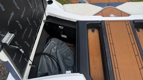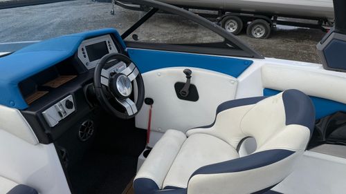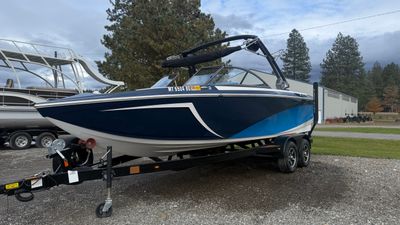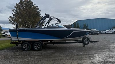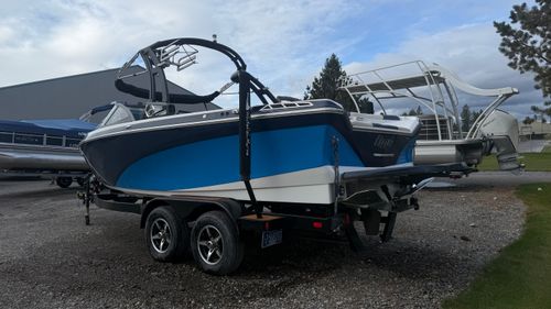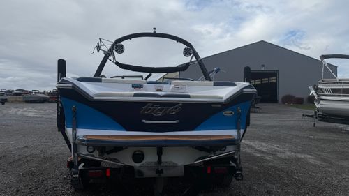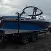 The 2019 Tige R21 is a 21-foot, multi-purpose boat built for wakeboarding, surfing, and water skiing, with a 14-person capacity. It features Tige's patented ConvexV hull, the TAPS 3 Surf System, and is powered by a standard 6.2L Ford engine. The boat is highly sought out after due to surf and wakeboard wakes and waves, and comes with features like a custom trailer, a Wet Sounds stereo system, and a variety of interior amenities.