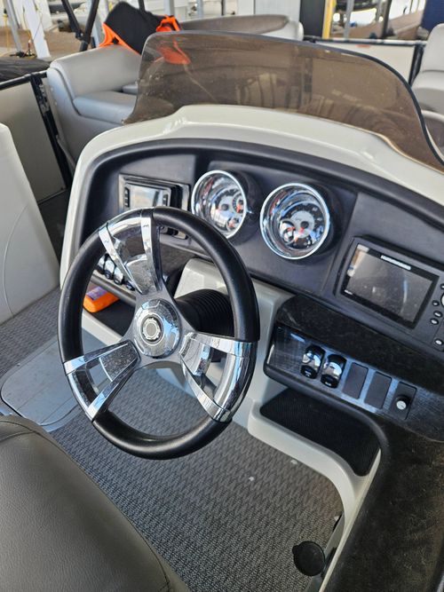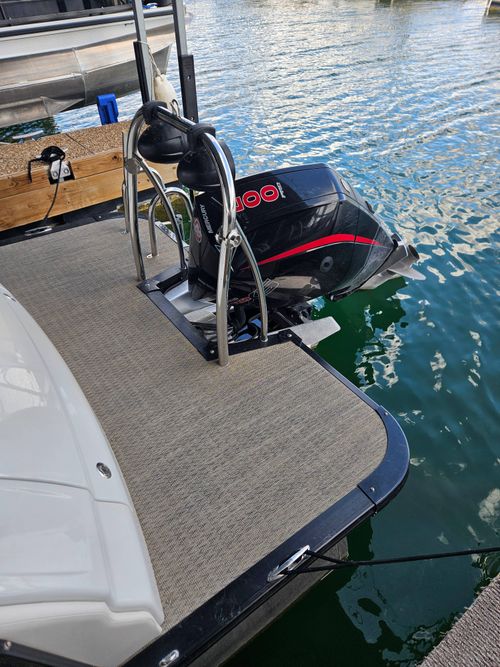 We are pleased to offer a pristine pontoon boat, a true gem for boating enthusiasts. This tri-toon vessel is powered by a Mercury Pro XS 200 outboard engine with approximately 156 hours of operation, ensuring you have the power and reliability to enjoy your time on the water.