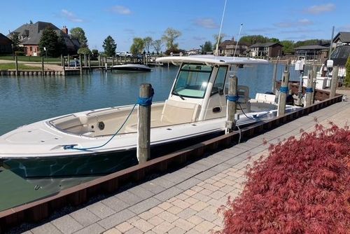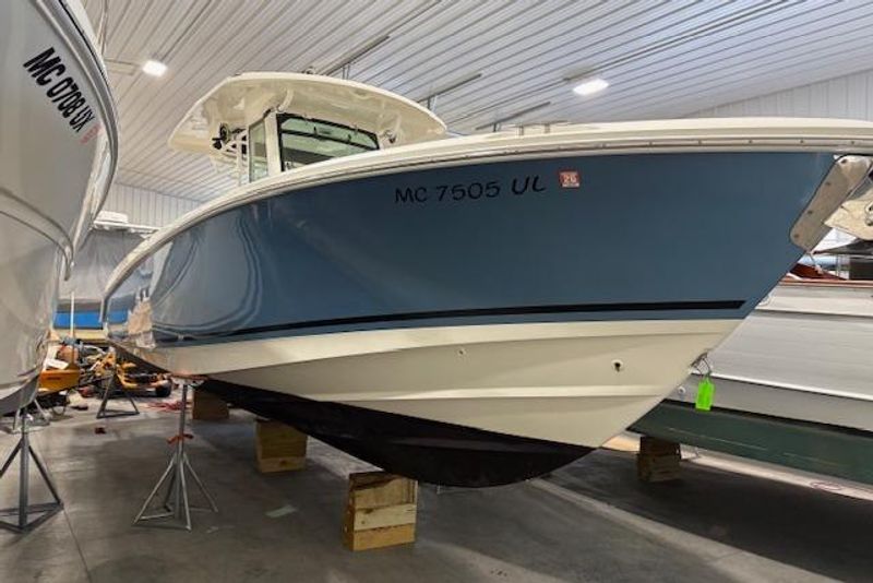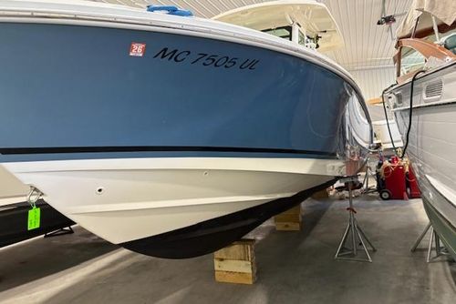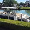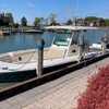 - Freshwater system (40 gallons) with sink in console, transom shower and anchor washdown