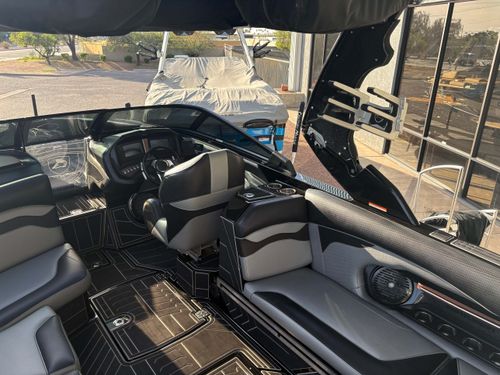 As the retail registered unit and market share leader in the 26-foot segment, the Centurion Ri257 continues to blow minds with the World’s best surf waves. This retail growth is thanks to a long wave with tons of push and a full spectrum of sweet spots from curl to face. This surfing phenomena is created by the Opti-V Hull, 5550 pounds of ballast, 7 specifically placed ballast locations and 90-second filling RAMFILL ballast. The Ri257 has all the advantages of a big boat in waves, wakes and ride with uniquely better handling and 50% more fuel efficiency.