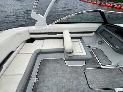 Turn heads and carve wakes with this stunning 2020 Cobalt CS3 Surf, a 23-foot premium bowrider built for both watersports and comfort cruising. Powered by a Volvo Penta Forward Drive with 300HP and 625 Hours, this boat features Cobalt’s TruWave Surf System, delivering customizable surf waves at the touch of a button. The spacious cockpit includes plush "L" lounge seating, a convertible companion seat, and a captain’s chair with flip-up bolster—perfect for entertaining up to 12 guests. Enjoy easy access to the swim platform via the walk-thru transom, and crank up your day with the integrated Bluetooth sound system. With a sleek design, high-end finishes, and surf-specific technology, the CS3 Surf is ready for unforgettable days on the water.