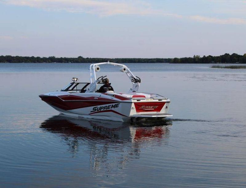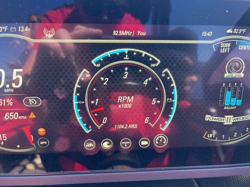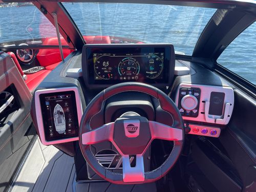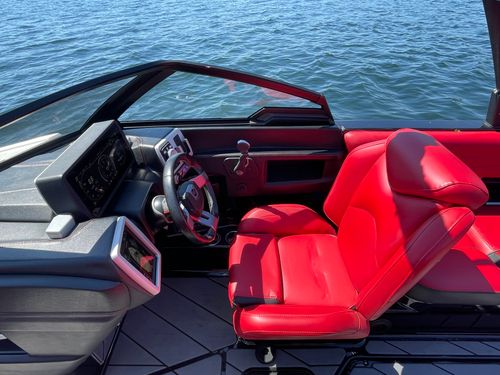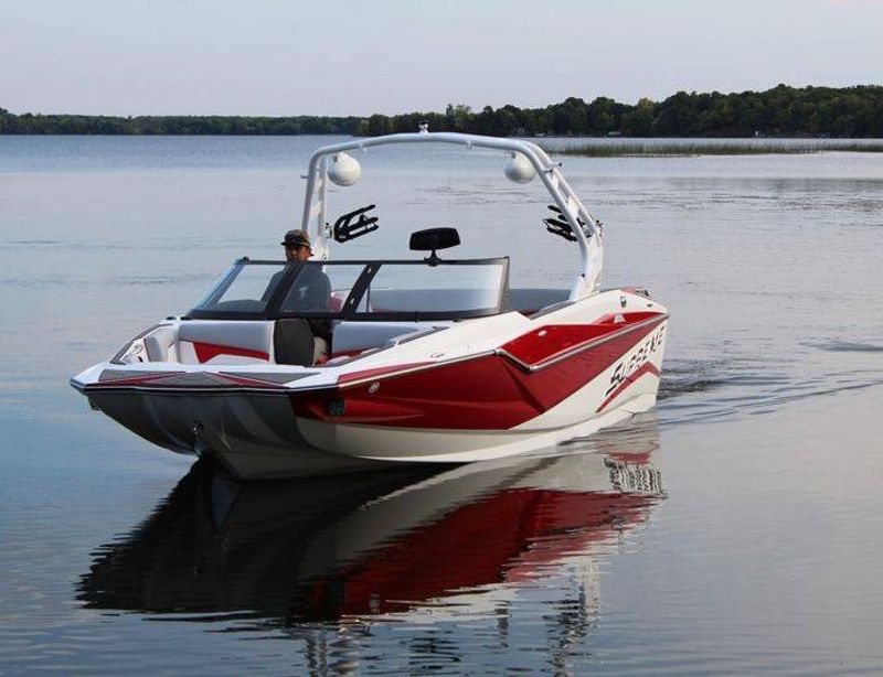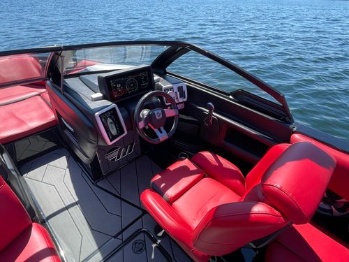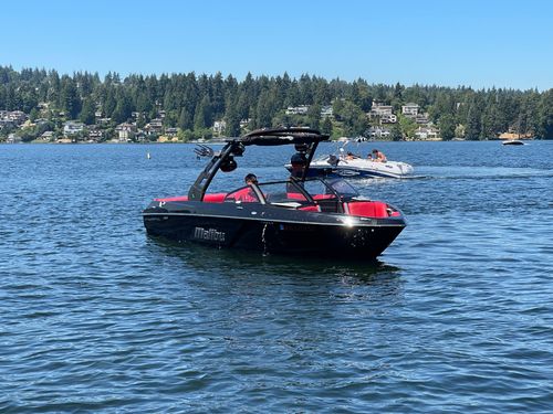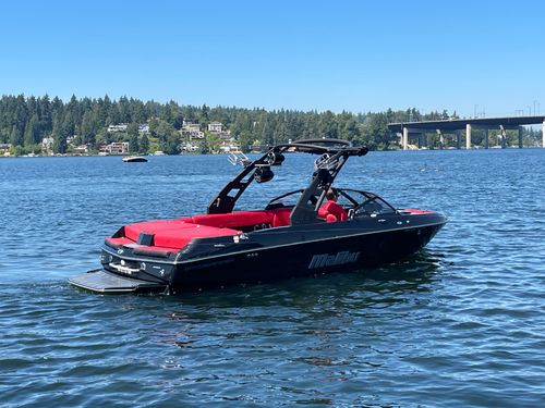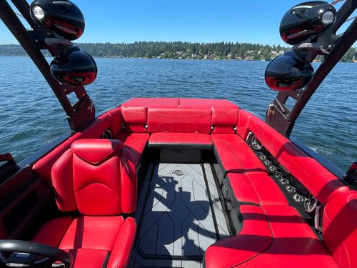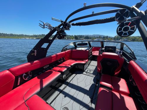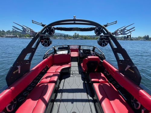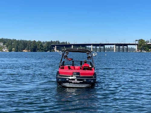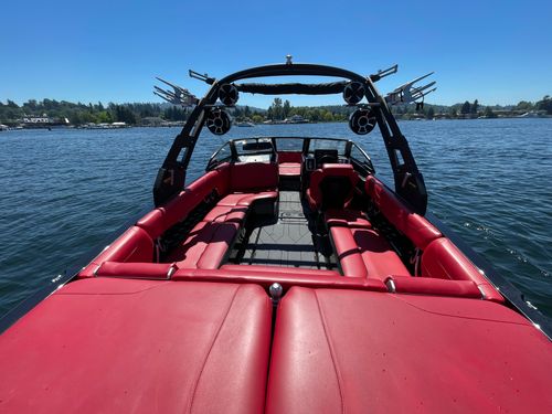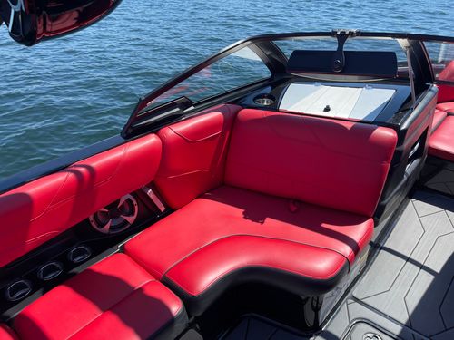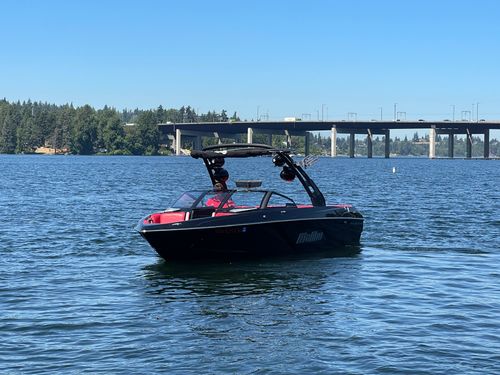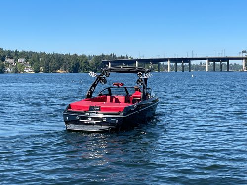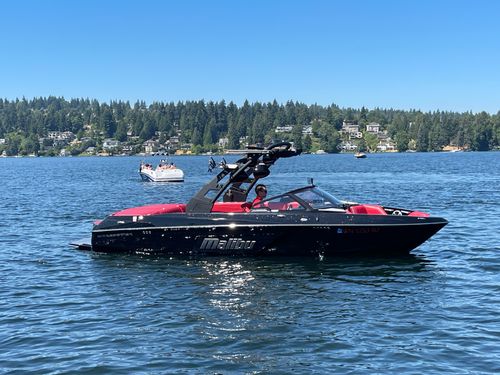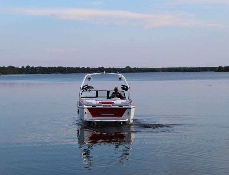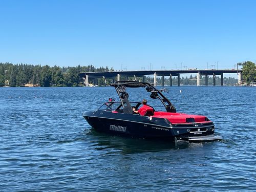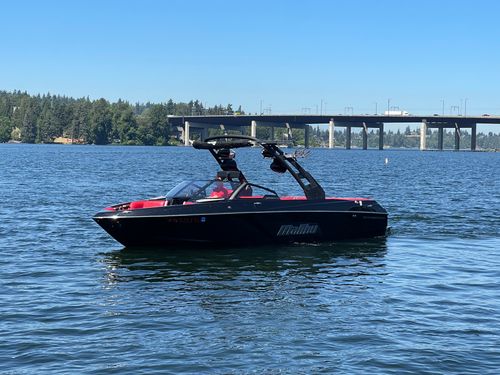 2020 Malibu 23 LSV w/ 1104 hours ready for summer surfing and cruising. Powered by the Malibu Monsoon M5Di, this boat is quiet and fuel efficient, yet can deliver enough power to pull all day surf sessions. Features include: quad tower speakers, bimini top, board racks, Dash w/ rotary dial, heater, Malibu HI FLO ballast intakes, Gen 3 Power Wedge, Surfgate w/ Surf Band, subwoofer and more.