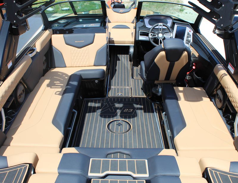 Fitted with top-tier technology, the boat includes an integrated touchscreen control, DockStar Handling System, and a state-of-the-art sound system. MasterCraft's commitment to innovation is visible in every aspect of this vessel.