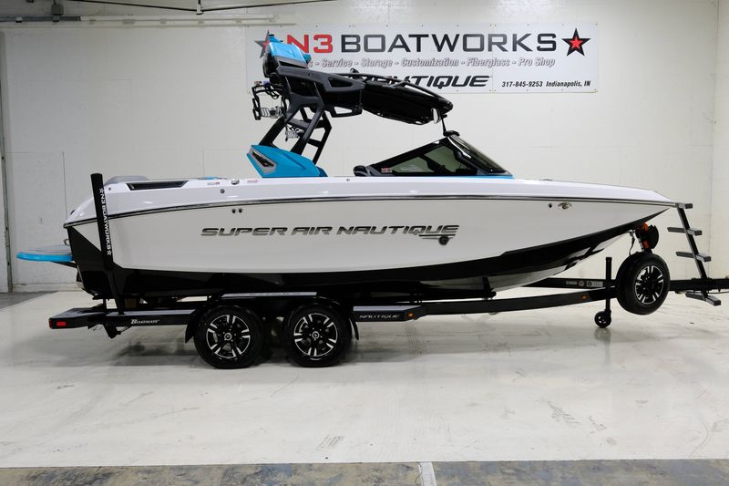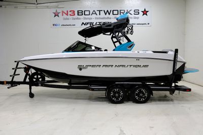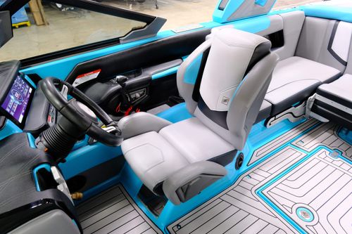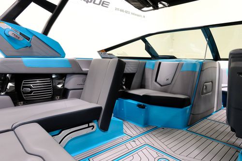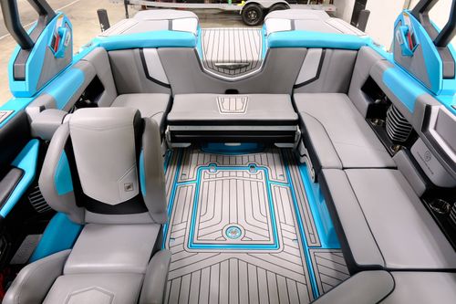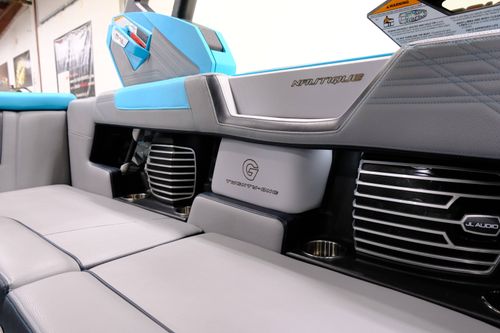 This one-owner Super Air Nautique G21 is a recent trade-in and sits with just 283 hours on the PCM ZR4 engine. It has been maintained by our dealership since new. Upon arrival it received a full service including fresh fluids, filters, and impeller. It also sits with newly replaced batteries and trailer tires. The boat sits in excellent condition with few blemishes inside and out. On the exterior, the stainless rub rail shows some wear as does the Sea Dek on the platform. The interior vinyl and flooring are in excellent shape with a small blemish between the seats in the bow. The boat is nicely equipped with a fully upgraded Studio Elite stereo package along with all available climate features including heated seats, heater, and air-dam. For a closer look at the overall condition, please watch our walk-through video on our website.