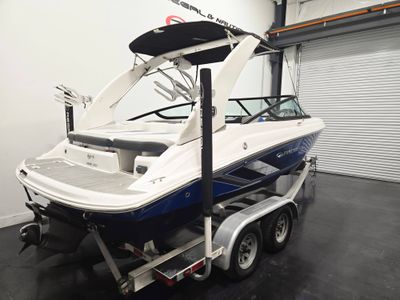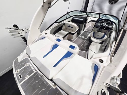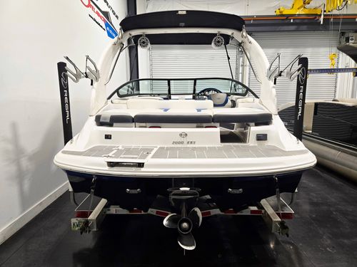 This 2020 Regal 2000 ES with only 222 hours is a stylish and versatile bowrider, perfect for cruising, watersports, and family outings. Powered by a Volvo V6 240HP engine, it delivers smooth and reliable performance. Well-equipped with premium features, it includes a Power Tower, SeaDek swim platform, bow walk-thru doors, cockpit table, bow filler cushion, transom trim switch, and docking lights for added convenience and comfort. The ESS package with titanium and Newport Blue accents paired with the Regal X-Treme Newport Blue color gives it a sleek, modern look, while additional features like an automatic fire extinguisher and travel storage cover make this boat a well-rounded, ready-to-enjoy option on the water