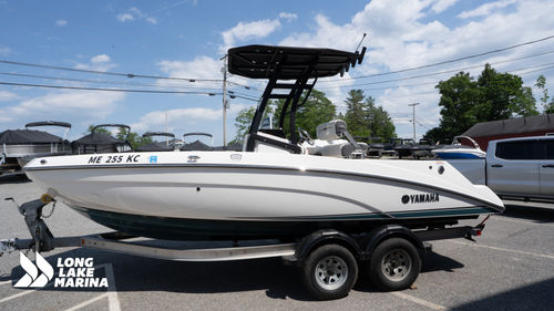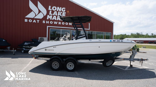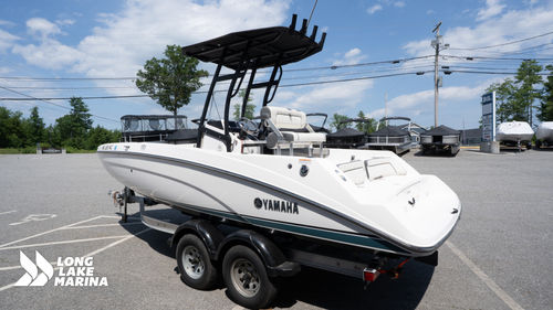A versatile center console designed for both fishing and family fun, this 21’ Yamaha is powered by twin 1049cc TR-1 High Output engines delivering 230 horsepower through Yamaha’s jet propulsion system. The result is quick acceleration, shallow-water capability, and confident handling in a variety of conditions. Anglers will appreciate the integrated rod holders, livewell, and spacious casting areas, while family and friends can enjoy plush seating, a protective T-top, and a premium sound system for all-day comfort. With abundant storage and low-maintenance reliability, the Yamaha 21 FSH Sport is ready for everything from chasing trophy fish to cruising your favorite waterways.
