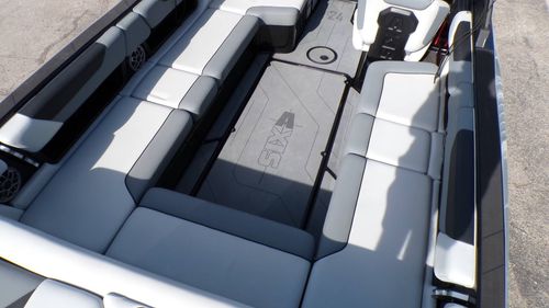 Notably, comfort is not compromised in this high-performing boat. Its spacious layout offers ample seating options, with plush upholstery that lends an air of elegance. The sun pad and swim platform provide areas for relaxation and enjoyment in the sun, and the well-equipped galley makes entertaining a breeze.