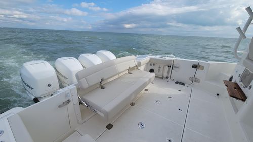 Step aboard this brand new Boston Whaler 405 Conquest where you will be greeted with an abundance of amazing luxury amenities. Fearturing four 400 horsepower Mercury Verrado Outboards with Port & Starboard Joystick controls as well as a Gyroscopic Stabilizer, this boat is well-equipped to take on any body of water. Stop by our St. Clair Shores Showroom to see this beautiful boat in person today!