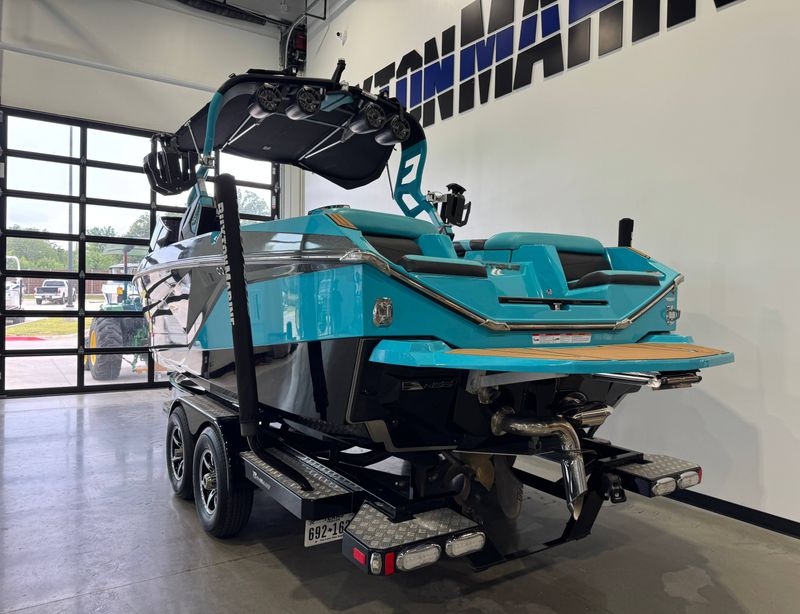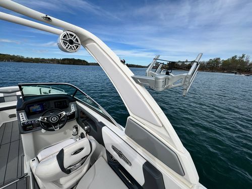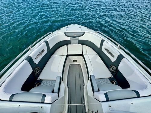 The built-in surf gate feature leads to precision control and added safety when surfing the waves. With the Chaparral surf system, expect perfect wave creation every time. Additionally, the customizable settings and surf band wrist remote let users adjust the boat's settings to suit their desired experience.