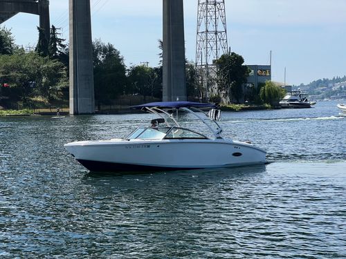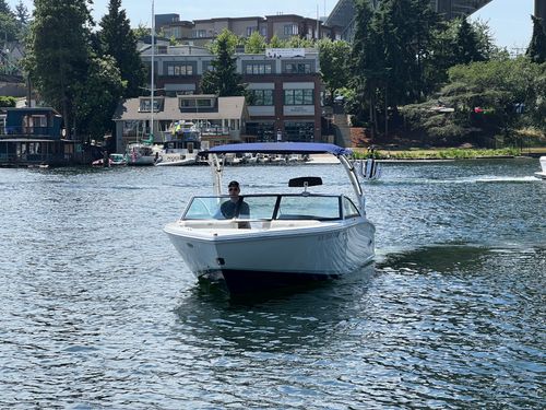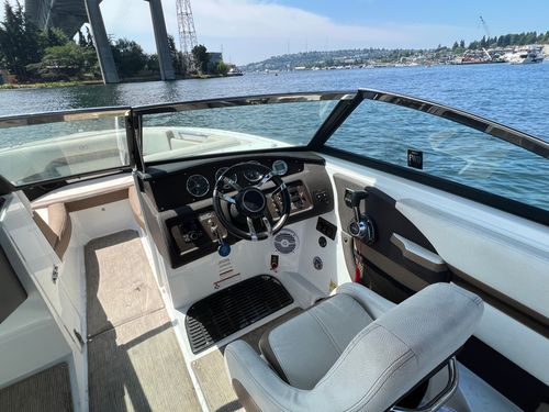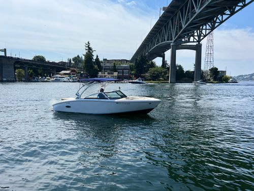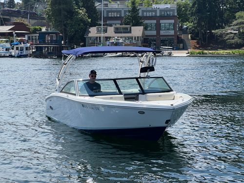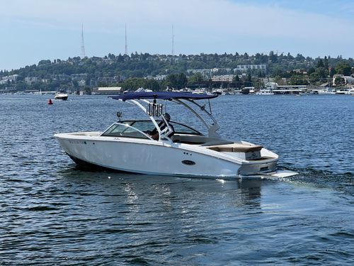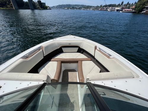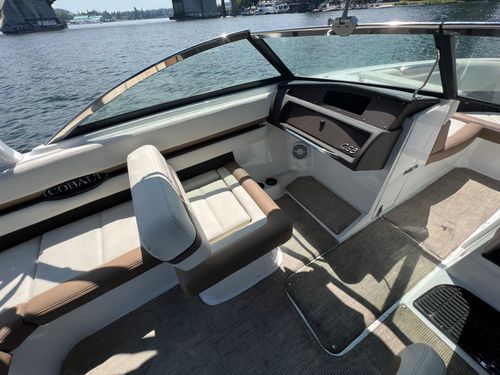 Discover the 2021 23' Cobalt CS23 Surf, now available at $74,900, reduced from $84,900. This versatile vessel, powered by a Volvo Penta V8 300 with 924 hours, is perfect for surfing or cruising the lake. It features dual battery with switch, bow and cockpit tonneau covers, a tower with Triton board racks and bimini, and stainless steel foot tread. Additional highlights include Zero Off cruise control, an auto fire suppression system, an air compressor with holder, and a flip down swim step. With one owner, this boat was boated in fresh water, mainly on Lake Washington, stored on a boatlift in-season and dryrack off-season, and meticulously maintained by Seattle Boat. A premium choice for those seeking a high-quality used boat for sale. Call or visit Seattle Boat Company in Seattle, Bellevue, or Lake Tapps to meet our award-winning team for certified service, financing options, and more.