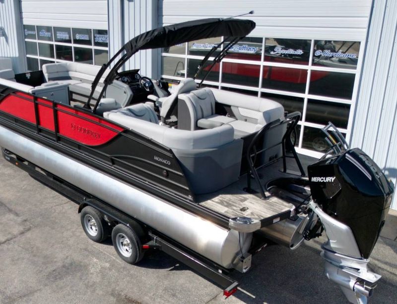 Each 2021 Monaco 255 SD by Godfrey comes equipped with a wide range of amenities to enhance your boating experience. Standard features include a comfortable sun lounge, a fully functional kitchenette, a dining area, and a spacious swim platform. Plus, the boat offers ample storage for your gear and refreshments.