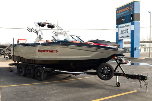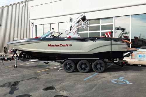 This one-owner 2021 MasterCraft X24 has just 100 hours and is loaded with the right upgrades to deliver an incredible day on the water. Finished in a sharp Midnite Black and Silver Flake color combination with a red, black, and beach tan CoolFeel interior, this X24 has the bold look and premium feel to match its flagship status. At 24’2” with room for up to 18 people, it offers a huge interior, deep storage, and the comfort to entertain all day.