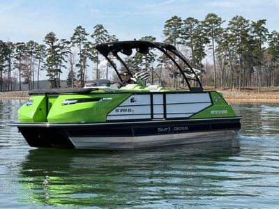 One of the cleanest 2021 Surf Boss 25s you'll find. 141 hours on a PCM 450HO, loaded with dual touchscreens, Rockford Fosgate audio system, underwater LEDs, and the EZ Drive stern thruster that makes docking a breeze