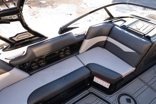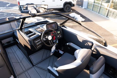 SOME KEY FEATURES ARE LISTED: SURF PIPE EXHASUT, G6 BALLAST FAST FILL, MOOMBA 7" TOUCH DISPLAY SCREEN, GENERAL USE PROP, A3 TOWER BLACK, BOARD RACKS WITH QUICK RELEASE, PREMIUM AUDIO UPGRADE WITH WETSOUNDS REV 8'S TWO AMPS SUBWOOFER AND COCKPIT SPEAKERS, DEPTH FINDER, DUAL BATTERIES, SURF BIMINI TOP W/ACCENTS,