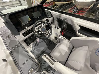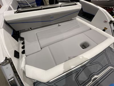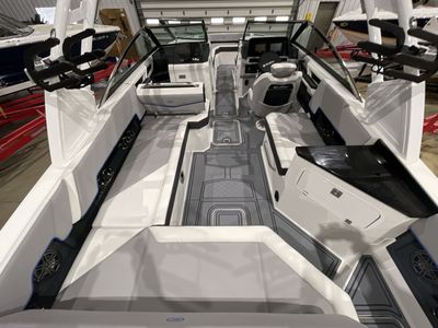 V8-350CE DP FWD, EVC w/PTA & Cruise (Volvo), Volvo Forward Drive (FWD), Accessory Power Plug - 12 Volt (dual), Black Leather/SS Steering Wheel w/Colored Stitching, Composite Helm Eyebrow, Custom Stitching, Depth & Water Temp Pkg., Glass Cockpit, Dual Garmin 743, Gloss Black Dash Console, Hour Meter(s), Illuminated Switch Panel/Switches, Stainless Steel Switches, Anchor Locker, Arch, Alum/Stainless w/Sunshade (fixed), Bow Scuff Plate, Stainless Steel, Fender Clips w/Line (4), Graphics, Molded-In Gelcoat, Midship Cleats, Model Designator, LED, Transom, Ski Pylon - Stainless Steel, Sof-Trac Mat, Swim Platform w/Flip-Down Swim Step, SS Tubular Platform Perimeter Rail, Stainless Steel Engine Vents, Swim Platform w/Flip-Down Swim Step, Tow Balls , Transhield Shipping Cover, Wakeboard Racks, Elite (Alum), Windshield, Stainless Steel, Aft Facing Rumble Seat, Aft Sunpad Backrest SS Accent Rail, Aft Walk-Thru Carpet, Bow Walk-Thru Door, Carpet, 40 oz., Snap-In w/Neoprene Back, Cooler, Removable Hard-Side (36 qt.), Del Mar Helm Capt. Chair, Head w/Porta Potti, Passenger Seat Flip Backrest System, Removable Bow & Cockpit Carpet, Seating Varadense Comfort, Sundeck Convertible Lounger, Trash Receptacle, 3.5 gal, iPod/USB/MP3 Port, Sound System, Bluetooth, w/6 Spkrs., Stereo Remote, Dash, 10/5/3 Year Warranty Protection, Ballast Tanks (6), Battery Switch, Dual w/ACR, Circuit Breaker Protected Elec System, Composite Floor, Composite Transom, Cruise Control-Zero Off , Fiberglass Cockpit Liner, Fiberglass Stringer System, Fire Extinguisher(s), Manual, Ignition Safety Switch, Kevlar Reinforced Hull, Stainless Steel Windshield Braces, Through Prop Exhaust