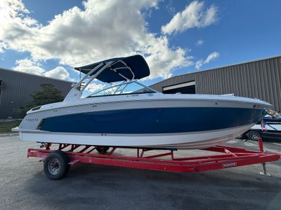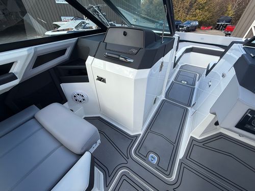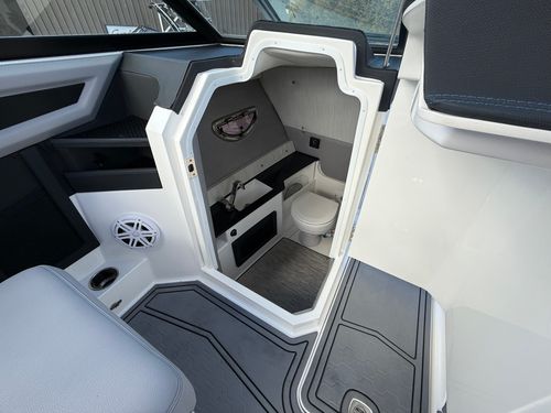 Step inside to a Frost/Summit interior wrapped in Cobalt luxury. From the Sof-Trac cockpit matting to the teak-accented dinette table and galley with sink, every detail is designed for comfort and class. The cockpit heater with pull-out vent extends your boating season, while storage compartment lighting and portal light in the head add thoughtful touches that elevate every outing.