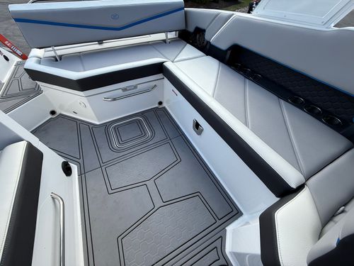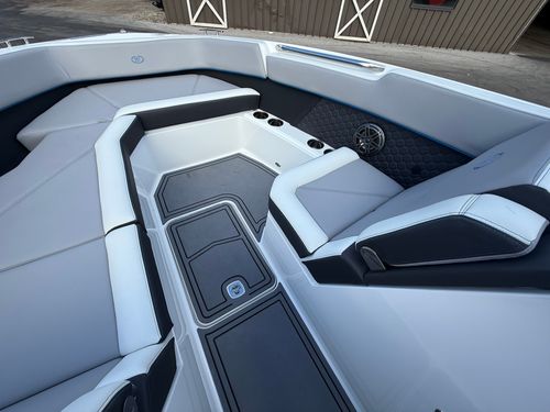 Powered by a Volvo Forward-Facing V8 380hp Dual Prop engine, this R8 Surf delivers the ideal balance of torque, precision handling, and smooth acceleration. Whether carving endless waves or enjoying a quiet evening cruise, the ride is pure Cobalt — powerful, quiet, & confidently refined.