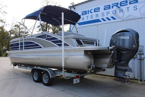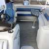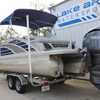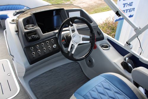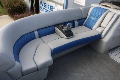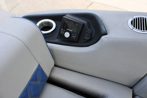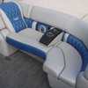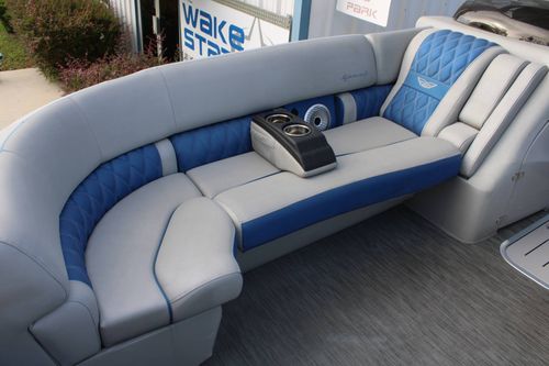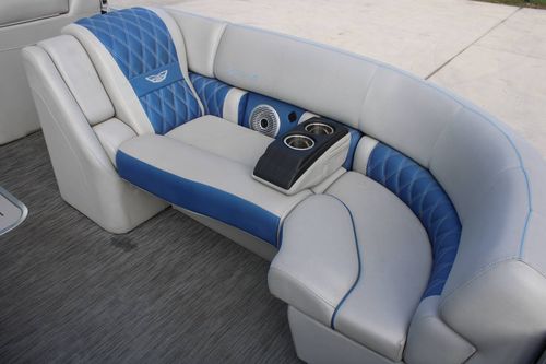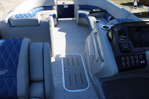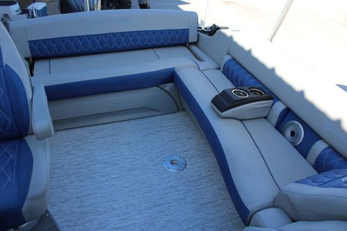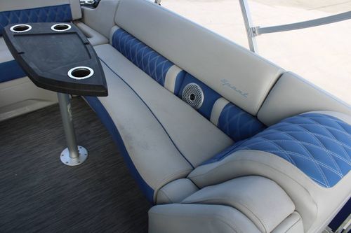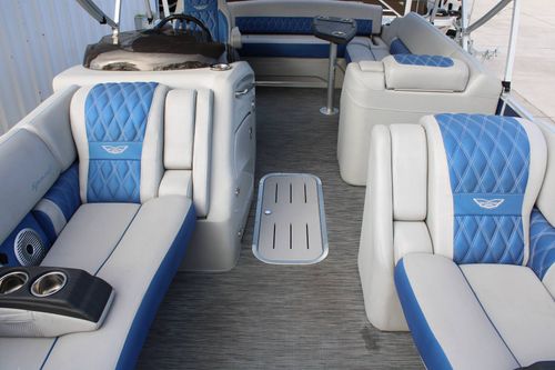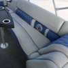 Riding on this pontoon boat is all about comfort and luxury. The boat's interior is stylishly designed, offering a level of comfort that is virtually unequalled in the boating world. While more specific details about these aspects of the boat have not been provided, they can be asked for and given upon request.