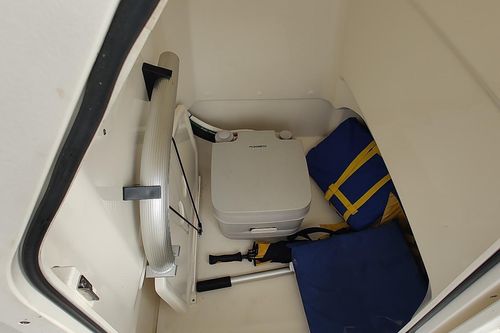 - Reversible pilot seat with locking backrest and storage underneath - includes 2 rod holders