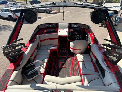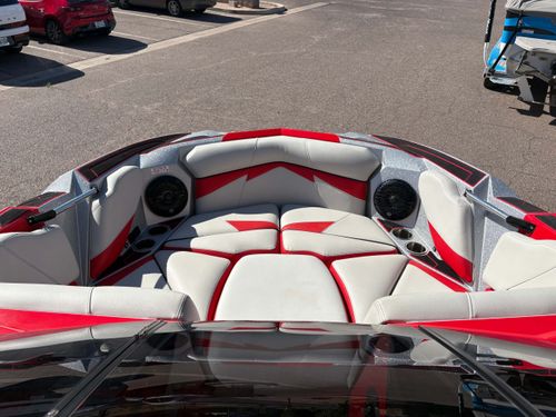 With its wide bow and sleek, sporty look, and skillfully integrated Maximus Tower, the Fi23 stands out immediately. The split-screen HD touch-screen dash offers easy functionality, and an available rearview camera lets you keep an eye on the riders enjoying world-class waves and wakes. With as many as seven precisely placed ballast locations that combine for the 4850 pounds of ballast, the Fi23 offers the industry’s largest factory ballast capacity in a 23-foot boat. QuickSurf Pro enables a two-second surf wake transfer from left to right, and when the surf system is disengaged, the Opti-V Hull creates perfectly symmetrical wakes at wakeboarding speeds.