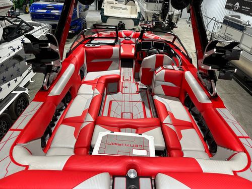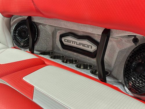 Onboard entertainment is complete with the Centurion Champ System by Wet Sounds, seamlessly integrated with Black Pro Rev10 Wet Sounds Tower Speakers. The system combines an ICE Stereo, AM/FM USB On-Screen Controls, 8" BLACK Interior Speakers, and a powerful 12" Subwoofer, letting you revel in your favorite tunes while sailing.